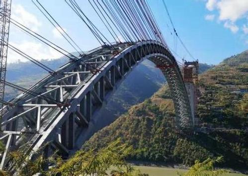 12月10日,我國怒江四線特大橋鋼桁拱順利合龍,這是云南大理至瑞麗鐵路全線重點控制性工程。大橋的合攏,標志著我國“一帶一路”中緬鐵路通道的建設取得了重大進展。大橋主跨為單跨490米的鋼桁拱,一跨飛越怒江天塹,是目前世界上鐵路拱橋的最大跨度。
